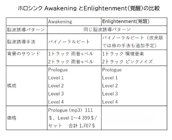Awakeningプログラム は、ヘミシンクにおける「ゲートウェイ・エクスピリエンス」のように、ホロシンクのフラッグシップ 製品(CDセット)でした(過去形)。